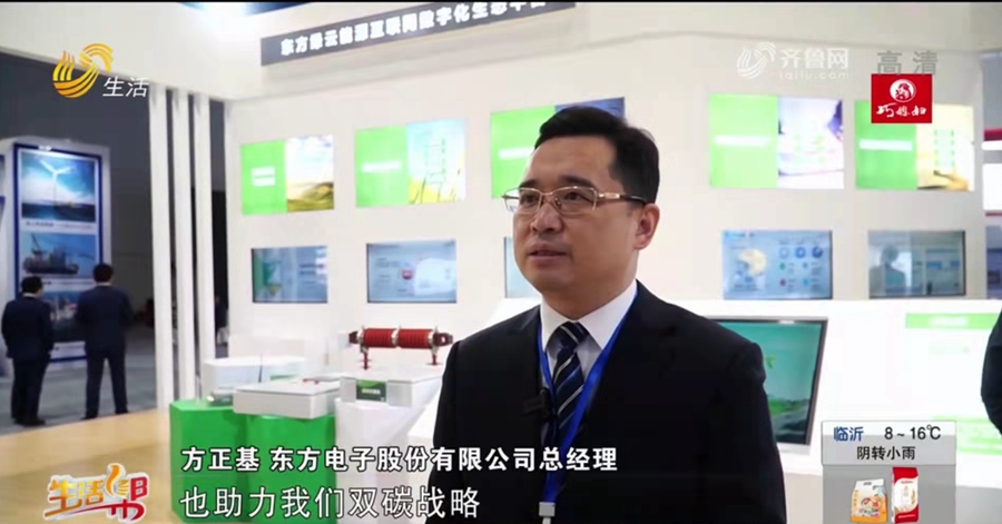 股份公司总经理方正基在接受山东电视台采访时说:“我们积极对我们的产业进行提升和发展,做了两个延伸。从横向上,传统电力能源的OT厂商延伸为我们和OT、ICT这种厂商的密切合作,以及通过云、边缘计算往云上的拓展,推出东方绿云,也助力我们双碳战略目标的实现。”烟台电视台新闻节目也报道了我公司参展的新一代智能充电桩情况。