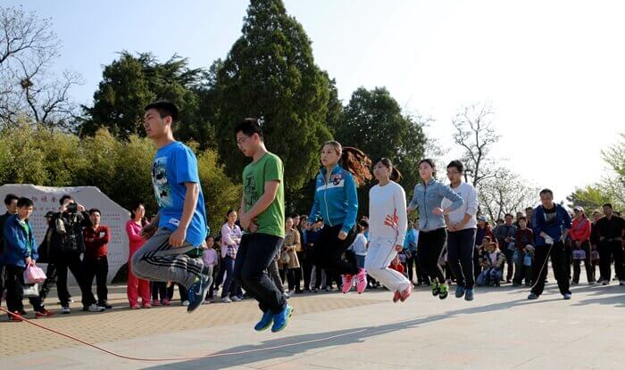 公司组织爬山跳绳活动